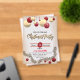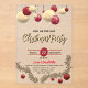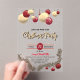 Decoración navideña en rojo y oro con nieve para una bella invitación a la fiesta de los Navidades.
