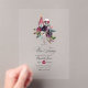 Celebre con estilo la futura novia con esta elegante y transparente invitación acrílica para una fiesta de cata de vinos o cualquier evento. Con un diseño sofisticado, con una botella de vino, un vaso y flores de borgoña y rubor en cascada, esta invitación es perfecta para los amantes del vino. Personalizable completo, es una moda y una manera memorable de invitar a los invitados a su celebración.