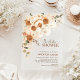 Combina la elegancia y la comodidad con esta invitación de acetato moderna y bohemio para la fiesta de la novia, bellamente diseñada con rosas terracota, flores de marfil y vegetación suave. Impresa en acetato transparente para un aspecto chic y contemporáneo, esta invitación también cuenta con un código QR escaneable que permite a los invitados responder o ver los detalles del registro al instante.