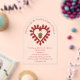 Esta impresionante invitación a la boda acrílica presenta una imagen de arte digital de una bellota rodeada por un corazón rojo. La bellota es marrón con una gorra verde y unos ojos lindos con pupilas negras y una sonrisa en la cara. el corazón que rodea la bellota tiene una serie de hojas de roble rojo bonito adjuntas a la misma que apuntan hacia el exterior del corazón creando un hermoso patrón de hojas. Hay un texto personalizado para que puedas incluir los nombres de la pareja feliz y todos los detalles importantes del Boda.