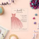 Esta invitación de cumpleaños es perfecta para una princesa que celebra su dulce cumpleaños número 16. Presenta un vestido color rosa y un falso purpurina de oro rosa con escritura moderna y tipografía popular. Reemplace fácilmente los detalles del fiesta haciendo clic en el botón "Personalizar".