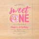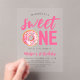 Invite a los huéspedes a su fiesta de primer cumpleaños con estas dulces invitaciones de cumpleaños con temática de donut. La encantadora fiesta de cumpleaños invita a incluir la frase "Sweet One" con letras rosas brillantes, y la "o" se sustituye por una donut acuarela rosa adornada con rociadores multicolores. El diseño se basa en un fondo acrílico escarpado o transparente. Personaliza las invitaciones de cumpleaños de donut dulces con el nombre de tu hijo y los detalles del fiesta, ¡convirtiéndolas en el regalo perfecto para la celebración de tu pequeño!