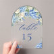 Invitaciones Acrílicas Elegant Blue Hydrangea Roses Wedding Table Number