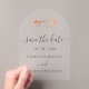 Created from original watercolor artwork by Catherine Sweetman, this boho fall Save the Date transparent acrylic arch card beautifully balances nature-inspired artistry with refined modern design, ensuring your guests feel the warmth and romance of your upcoming celebration.