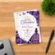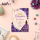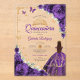 Purple gold Quinceanera celebration acrylic invitation. Features brunette girl in ball gown dress, script font, gold butterflies, roses and tiara. Perfect for an elegant princess style glam celebration. Personalize with your own details. Stylish transparent or frosted acrylic invitations.