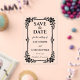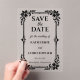 Announce your upcoming celebration with this elegant Save the Date card. The botanical illustration beautifully frames your details, for a elegant and sophisticated presentation. Rendered entirely in shimmering black on clear acrylic stock, the design offers a luxurious aesthetic that feels both romantic and timeless.