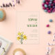 This elegant wedding invitation features a clean, vertical layout with ample negative space that highlights the central text and floral illustration. The color palette includes rich dark green hues set against a light cream background, creating a sophisticated contrast. A realistic yet stylized illustration of yellow lilies adds a natural touch to the design, while the typography combines bold serif fonts for the names with cursive script for a formal and inviting tone. Perfect for couples seeking a classic and refined look, this invitation is ideal for celebrating a significant life moment with style and grace.