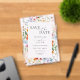 The front showcases your wedding details in elegant serif and script fonts framed by delicate hand-painted florals, while the coordinating back design features matching wildflower artwork, creating a cohesive and romantic look that sets the tone for your special day. Perfect for:
