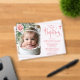 Beautiful pink and white roses elegant "Baptism" photo design featuring a lovely bouquet accented with eucalyptus greenery with pink script and italic text. All text is editable except for script text "Baptism" and cross. Composite design by Holiday Hearts Designs.