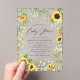 ¡Celebra a la futura madre con nuestras elegantes invitaciones a la ducha de girasol! Mostrando los detalles de tu ducha enmarcados por un hermoso borde de girasoles acuáticos y frondosos paisajes verdes, este diseño aporta un toque de elegancia natural. El fondo acrílico esmerado o transparente añade un toque moderno y sofisticado, haciendo que estas invitaciones sean perfectas para una celebración de ducha de bebé alegre y luminosa.