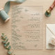 Anuncie su celebración con un toque de serenidad orgánica usando este diseño personalizado sobre acrílico transparente. Delicados contornos botánicos de color verde salado fluyen con gracia por un lado, presentando sus detalles con un fondo claro. Esta exquisita obra de arte minimalista ofrece una elegancia fresca y moderna, perfecta para un evento natural y sofisticado.