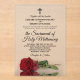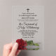 Estas magníficas invitaciones de boda son elegantes, elegantes y tradicionales, a la vez que modernas y elegantes. El diseño se compone de una única rosa roja que se extiende a su lado, reflejada en una piscina de agua. Hay un crucifijo o cruz en la parte superior y el texto invita a tus amigos y familia a una masa nupcial que te une en el sacramento del santo matrimonio. Disponible en acrílico escarpado y claro, estas invitaciones son la manera perfecta de invitar a sus seres queridos a compartir su alegría mientras usted toma el juramento de matrimonio.