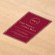 Esta impresionante invitación a una boda en monograma presenta una elegante tipografía de oro en un fondo burdeos profundo. El diseño clásico e intemporal hará que su boda se destaque y sea recordado por sus huéspedes. El precioso monograma dorado añade un toque elegante al diseño, lo que lo hace perfecto para un boda formal. El fondo borgoñoso y la tipografía de oro le dan a la invitación un aspecto extra especial que lo hará un regalo para los años venideros. Infórmele a sus huéspedes sobre su día especial con esta invitación atemporal y clásica.