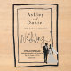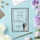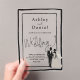 Esta elegante invitación a la boda de acrílico en blanco y negro es perfecta para un boda moderno. El diseño es sencillo y cuenta con una elegante caligrafía negra, un marco negro de moda y un ilustracion de novios sobre un fondo transparente y claro. La tarjeta de invitación incluye los detalles del boda en la parte posterior en lugar de pagar por una tarjeta separada.