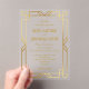 Invitaciones Acrílicas Elegante Boda de oro Art Deco Transparente