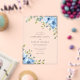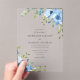 Hermosas flores de color azul acuático y vegetación decoran esta elegante invitación floral a la boda acrílica.