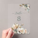 Invitaciones Acrílicas Elegante Boda Floral Número de tabla transparente