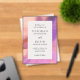 Moderna invitación acrílica boda con un diseño sencillo y elegante con sus detalles de evento rodeados de un borde en un vibrante patrón abstracto. Esta invitación inspirada en los colores de una puesta de sol del desierto es ideal para un boda de verano.