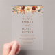 Celebre su día especial con estas elegantes invitaciones acrílicas bodas de otoño, con un diseño claro y moderno acentuado por tonos cálidos de otoño y sutiles detalles folclóricos. Perfecto para un boda de otoño o de inspiración rústica, esta invitación combina la belleza natural de temporada con el lujo moderno y refinado. El acabado acrílico transparente ofrece un ambiente elegante y contemporáneo, lo que lo convierte en un lugar inolvidable para sus huéspedes.