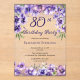 Elegante diseño de color violeta violeta con motivos florales "80th Birthday Party", con una franja floral superior e inferior de violetas con acentos de polvo blanco.