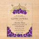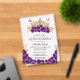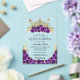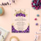 Elegante Glam Purple Floral Gold Tiara Quinceanera Invitación
