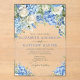 Elegante diseño boda floral con acuarelas florales de flores de hortensias azules, vegetación y rosas blancas.