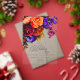 Acepte la belleza opulenta de una cosecha floral de otoño con nuestra cautivadora invitación a la boda. El telón de fondo negro, dramático y suave, es el lienzo perfecto para un ramo increíblemente realista. Imaginen una vibrante explosión de color, con rosas en naranja y magenta oscuro, con pequeñas flores magenta rosa y violetas moradas y junto a mamáes de melocotón y otras florales vibrantes. El frondoso follaje verde oscuro completa el conjunto, añadiendo un toque de elegancia natural. Este diseño cautivador es perfecto para cualquier temporada, reflejando la apasionada intensidad de tu historia de amor. Los detalles de su boda se muestran en un guión elegante, asegurándose de que se destacan bellamente en el contexto dramático. Este encantador diseño crea una invitación inolvidable para celebrar su día especial. Creado por Simply Farmhouse Press.