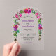 Elegante moda color de agua morado rosa boda arco acrílico invitación transparente. Fijar el tono para una celebración romántica y sofisticada con esta elegante invitación al arco acrílico de primavera y verano boda. Con delicadas flores rosadas y violetas elegantemente dispuestas alrededor de un moderno diseño de arco, esta invitación exuda belleza y encanto intemporal. Impresa en acrílico elegante y cristalino, la combinación de suaves detalles florales y tipografía refinada crea una perfecta mezcla de elegancia y estilo contemporáneo. Ideal para bodas de jardín, al aire libre o clásicos, esta invitación ofrece una manera única y lujosa de invitar a los huéspedes a su día especial.
