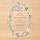Elegantes invitaciones de boda rosa con sus nombres y detalles bodas enmarcados por un hermoso óvalo de rosas acuarelas en tonos rosa rubor y rosa polvoriento, complementado con un frondoso follaje verde. Con un fondo acrílico espumoso o transparente, estas románticas invitaciones a la boda rosa son perfectas para bodas de primavera y verano en el jardín. Personalice sus invitaciones para crear una primera impresión memorable y encantadora para sus huéspedes.