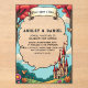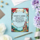 Esta elegante invitación acrílica boda de estilo cuento de hadas es perfecta para un boda moderno. El diseño retro incluye un bosque vintage con encanto, un ilustracion de castillo y una caligrafía negra en un fondo temático de cuentos.