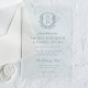 Invitaciones Acrílicas Escudo Floral Azul Dusty Boda Monograma Elegante