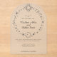 Una simple invitación a bodas celestiales con temática celeste con sol, luna creciente y estrellas en círculo, en una invitación de acrílico con arcos de escarcha. Disponible en acrílico transparente o congelado. Un estilo moderno único.