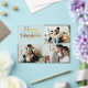 Send holiday cheer with a stylish Merry Christmas Photo Collage Card! Featuring a chic retro script in golden tones and a sleek black background, this card beautifully showcases favorite family photos. It’s the perfect blend of classic elegance and modern vibes, making it a timeless keepsake for loved ones. Personalize with photos and a family name to create a one-of-a-kind holiday greeting!