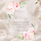 Una hermosa y femenina invitación para una fiesta sorpresa para celebrar un cumpleaños 70 en estilo elegante. Este diseño floral está bordeado por un marco de encantadoras flores de peonía rosadas y vegetación. Esta invitación está disponible como una invitación impresa en acrílico transparente. Una de las tendencias más populares en el diseño de invitaciones de este año.