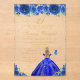 Esta elegante y glamorosa invitación a la fiesta de cumpleaños incluye a una hermosa princesa con el pelo rubio y la piel clara en un vestido de bolas azul real. El texto combina el guión manuscrito y las fuentes sans serif modernas para un aspecto elegante y sofisticado. Los arreglos florales, las mariposas y los confeti dorados crean una perfecta mezcla de rústico y moda. Gráficos de www.etsy.com/uk/shop/SunflowerDayLove