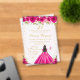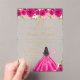 Esta elegante y glamorosa invitación a la fiesta de cumpleaños incluye una hermosa princesa con el pelo oscuro y la piel oscura en un vestido de bola rosa caliente. El texto combina el guión manuscrito y las fuentes sans serif modernas para un aspecto elegante y sofisticado. Los arreglos florales, las mariposas y los confeti dorados crean una perfecta mezcla de rústico y moda. Gráficos de www.etsy.com/uk/shop/SunflowerDayLove