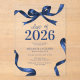 ¡Celebre el logro de su graduado con elegancia inigualable! Nuestras invitaciones de fiesta de graduación de acrílico 'Promoción de 2026' combinan un fondo transparente atemporal con un lazo de acuarela azul de moda y un borde de cinta. Junto con una plantilla de texto personalizable, estas invitaciones son una forma hermosa de conmemorar este evento que cambia la vida.