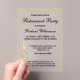 Fiesta de Jubilación Elegante Invitación Acrílica Negra y Dorada — Esta elegante invitación a la fiesta de retiro acrílica presenta los encantadores toques de la fibra de oro y la copa de champán como toque adicional y hay mucho que personalizar para hacer apropiado para tu propio evento. Cualquier pregunta de diseño, sólo envíe una charla y estaremos encantados de asistirle. Hay muchos elementos fiestas que serían apropiados para su evento, sólo pregunte.
