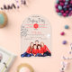 Esta hermosa invitación a la fiesta de los Navidades con forma de arco presenta a toda su familia sobre un fondo acrílico escarpado. Personalizar con una foto familiar de fondo blanco ( el fondo será reemplazado por transparencia). Todos los textos están escritos con tipografía refinada y son personalizables. Algunas decoraciones blancas: copos de nieve, estrellas brillantes y brillantes al fondo. ¡Por una invitación muy personal!