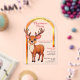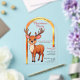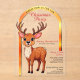 Esta hermosa invitación a la fiesta de Navidades con forma de arco y arco dorado es muy tendencia. El ilustracion es un bonito reno con grandes ojos curiosos, pintura de mano inspirada en el personalizado. Todos los textos están escritos con tipografía refinada y son personalizables. ¡Perfecto para una hermosa celebración de navidades!