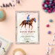 Moderno Race Horse Derby Fiesta Invitación ecuestre Moderna Carrera de Caballos Derby Invitación de fiesta con el ilustracion de un caballo de carreras con jockey y patrón a rayas en la espalda. Todos los elementos de texto se pueden cambiar para que este diseño pueda ser utilizado también para otros eventos: elegante invitación a boda ecuestre, fiesta de cumpleaños a caballo, fiesta de observación derby, apertura de establos y más. El fondo, el color del ilustracion y los colores del texto se pueden cambiar con la herramienta de diseño!