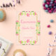 Celebra tu 15 cumpleaños con estas invitaciones acrílicas de la fiesta mexicana floral de Quinceañera. El diseño está decorado con flores de color rosa y amarillo y un marco dorado falso. Los diseños son gráficos planos impresos - NO RELIEVE METALIZADO DORADO REAL.