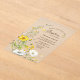 Sumerja a sus seres queridos en la serena belleza de un exuberante prado de flores silvestres, donde delicadas mariposas flotan a través de un tapiz botánico. Nuestras invitaciones de bautismo diseñadas de manera única capturan la esencia de la primavera, infundiendo su celebración con un sentido de asombro natural y sinceridad. Cada invitación está imprimida de manera experta en acrílico transparente de primera calidad, ofreciendo un toque moderno en el papel tradicional. El material robusto y liviano muestra una tinta vívida que se resiste a desvanecerse, asegurándose de que sus agujeros permanezcan tan vibrantes y memorables como el momento especial en sí. Las invitaciones, adornadas con motivos florales a mano y mariposas floridas, se caracterizan por una mezcla artística de tonos pastel y detalles minuciosos. Este armonioso diseño evoca una escena de jardín encantadora, en la que reina el tono perfecto para una ceremonia de bautismo tierno y alegre. Más allá de su atractivo visual, esta invitación acrílica botánica hace las veces de un regalo para los huéspedes. Ya sea que se muestre en un mantel o se inserte en un libro de recortes, sirve como un recordatorio sincero de un acontecimiento histórico, creando recuerdos duraderos mucho después de que el día haya pasado. Listos para personalizar y compartir, estas invitaciones ofrecen una personalización sin esfuerzo y una producción rápida. Deleite a sus huéspedes y honre el bautismo de su hijo con una invitación elegante que refleja tanto su estilo único como la belleza intemporal de la naturaleza.