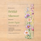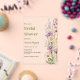 Un trasfondo claro y transparente. Decorada con flores silvestres de color rosa, morado y amarillo. Personalice y agregue el nombre de la novia para ser y los detalles del fiesta.