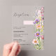 Un fondo claro y transparente, con una gran cruz rosa adornada con flores rosas y violetas. Personalice y agregue el nombre y detalles.