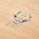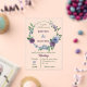 Hermosa invitación acrílica boda romántica con flores polvorientas azules y moradas y algunas hojas verdes. PARA OBTENER MÁS PRODUCTOS COINCIDENTES, haga clic en la colección de arriba o póngase en contacto conmigo