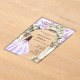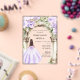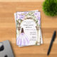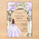 Un trasfondo claro y transparente. Gran arco de mármol decorado con flores de lavanda y color violeta. Un chica con un vestido de color lavanda. Personalice y agregue un nombre y detalles.
