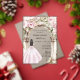 Un trasfondo claro y transparente. Un gran arco de mármol decorado con flores rosas. Un chica con un vestido rosa claro. Personalice y agregue un nombre y detalles.