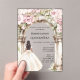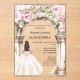 Invitaciones Acrílicas Flores rosadas arcos blanco vestido claro Quincean