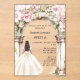 Invitaciones Acrílicas Flores rosadas arcos blanco vestido transparente D